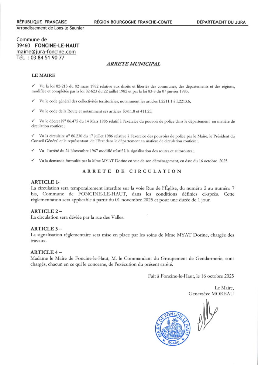 Accueil Actualités ARRÊTE DE CIRCULATION Rue de l’Église ARRÊTE DE CIRCULATION Rue de l’Église Informations Publié le 16/10/2025 Partager sur les réseaux Partager sur Facebook Partager par mail Copier le lien Du 1er novembre 2025 Article précédent «200m² de Folie !!» Retour