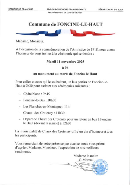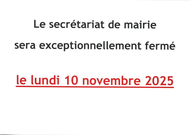 Informations Exceptionnel – Pas de remise de titre Secrétariat de mairie fermé le lundi 10 novembre 2025