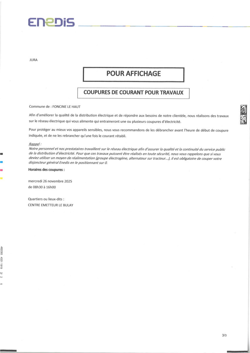 Accueil Actualités Coupure de courant Coupure de courant Informations Publié le 07/11/2025 Partager sur les réseaux Partager sur Facebook Partager par mail Copier le lien Mercredi 26 novembre2025 Le Bulay Article précédent «Coupure de courant» Retour Article suivant «Fermeture secrétariat de mairie»