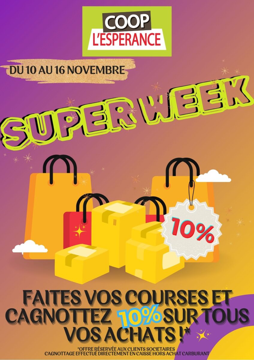 Accueil Actualités SUPER WEEK SUPER WEEK Animations Publié le 22/10/2025 Partager sur les réseaux Partager sur Facebook Partager par mail Copier le lien Du 10 au 16 novembre 2025 COOP l’Espérance Article précédent «Publication Mariage» Retour Article suivant «C’est Halloween !!»